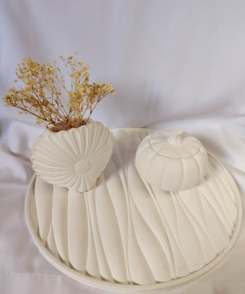 قوالب سيليكون بأشكال مختلفة مثل المباخر، الصواني، الفازات والكوسترات.